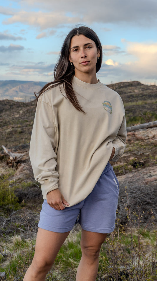 Calisthenics Beach Vacay Oversized Long Sleeve T-Shirt Beige