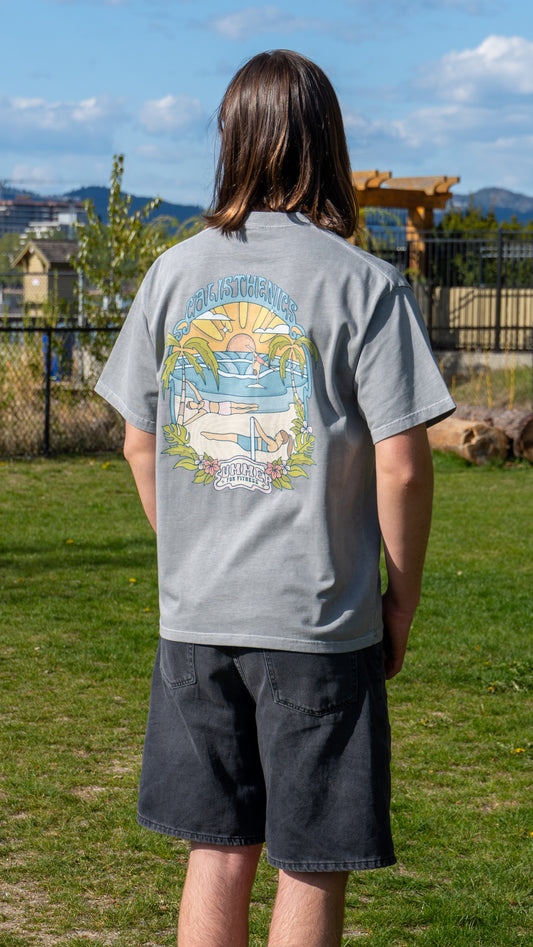 Calisthenics Beach Vacay Oversized Washed T-Shirt Grey